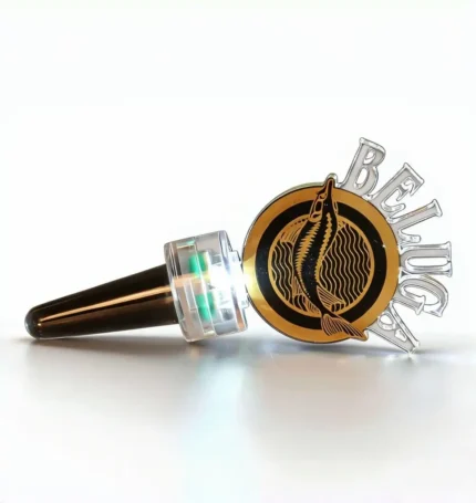 Custom LED Bottle Stopper Topper – Illuminated Acrylic Brand Logo Glorifier, Rechargeable Strobe Light Spout for Premium Vodka & Champagne Bottle Service