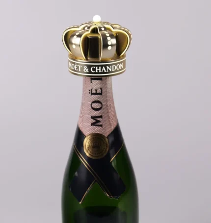 Moët & Chandon Gold Electroplated LED Crown Bottle Topper – Laser Engraved Luminous Logo & Glowing Beads with 600mAh Rechargeable Battery